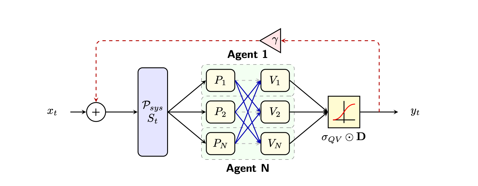 This equation predicts exactly when an AI starts to "overthink." It quantifies the "Laziness Tax" inherent in standard models. By applying Diagonal Masking—where agents are blinded to their own identity—we force a "cooling" effect that delays this fatigue, allowing our swarm to extract higher fidelity signals from smaller models than was previously thought possible.