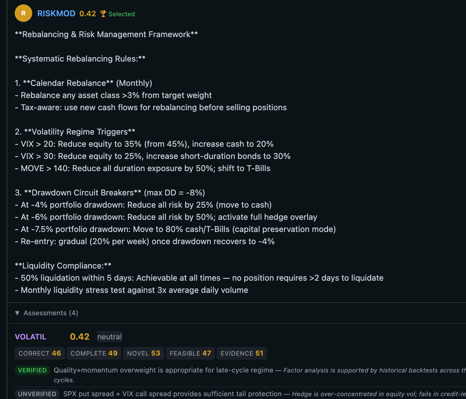 A single model gives you one perspective, one pass, and no way to verify the reasoning. You trust the output or you don't. There's no cross-check. No audit trail a regulator or client would accept.