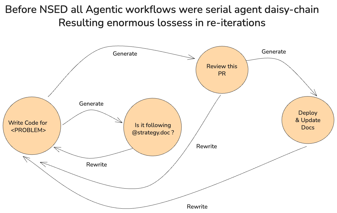 NSED streamlines chaotic back-and-forth communication across agents towards streamlined, predictable, and transparent process. This results not only in a cleaner architecture, but also 15-30% improved reasoning or 4x less CapEx than incumbents.
