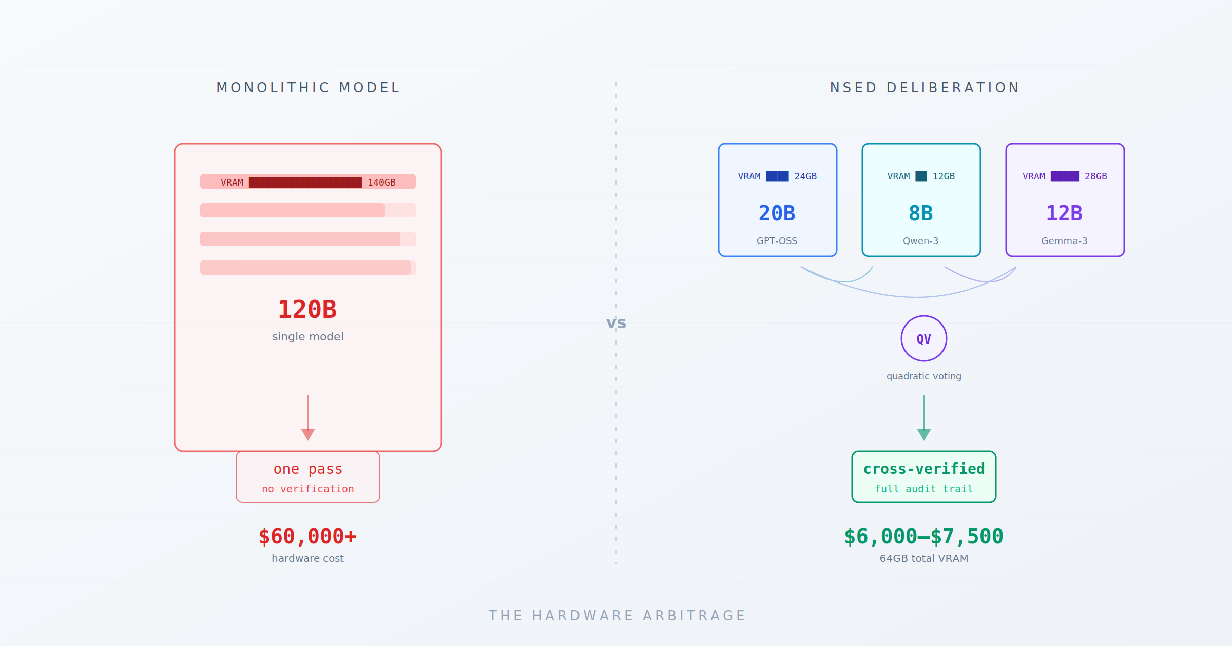 If you're already running local models — through Ollama, vLLM, or any OpenAI-compatible endpoint — NSED isn't a replacement. It's an amplifier. The deliberation protocol wraps around whatever models you have and makes them substantially better.