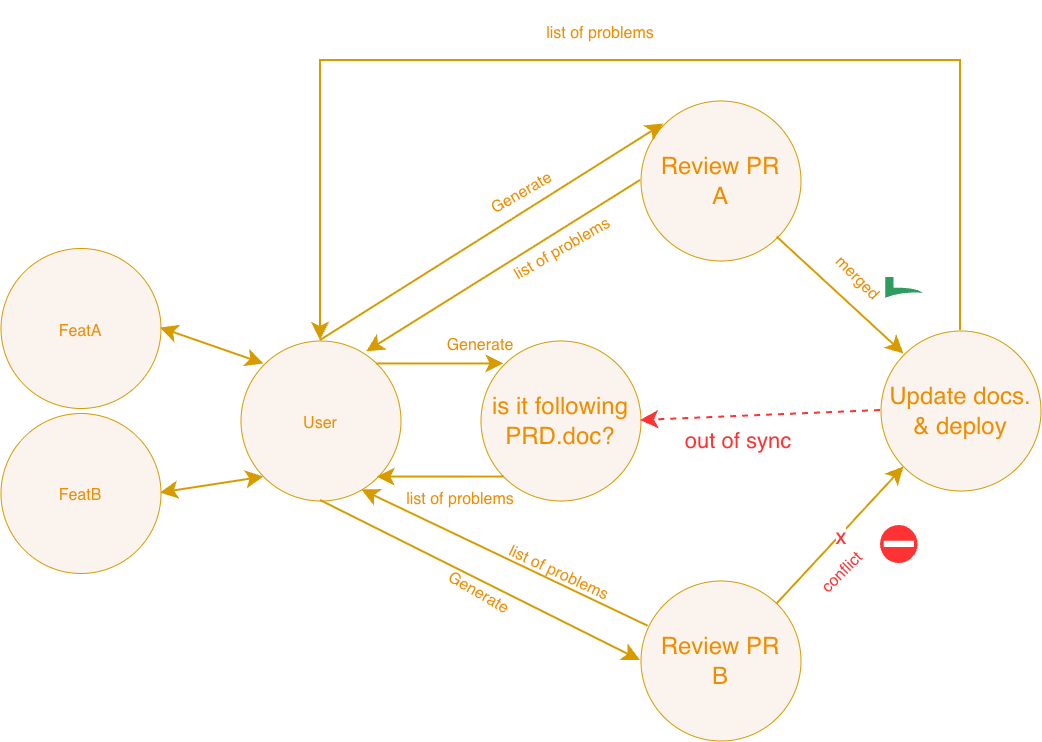 This leads to chaos, manual complexity and overall difficulties later on to explain how exactly initial business requirements were linked by prompts and checks to the outcomes.
